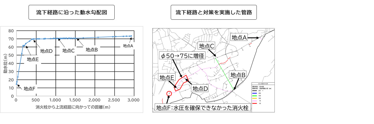 将来管網に向けた適正口径の検討の中で、火災時の水理解析に関する問題点への検討を行ったので、その内容を報告する。